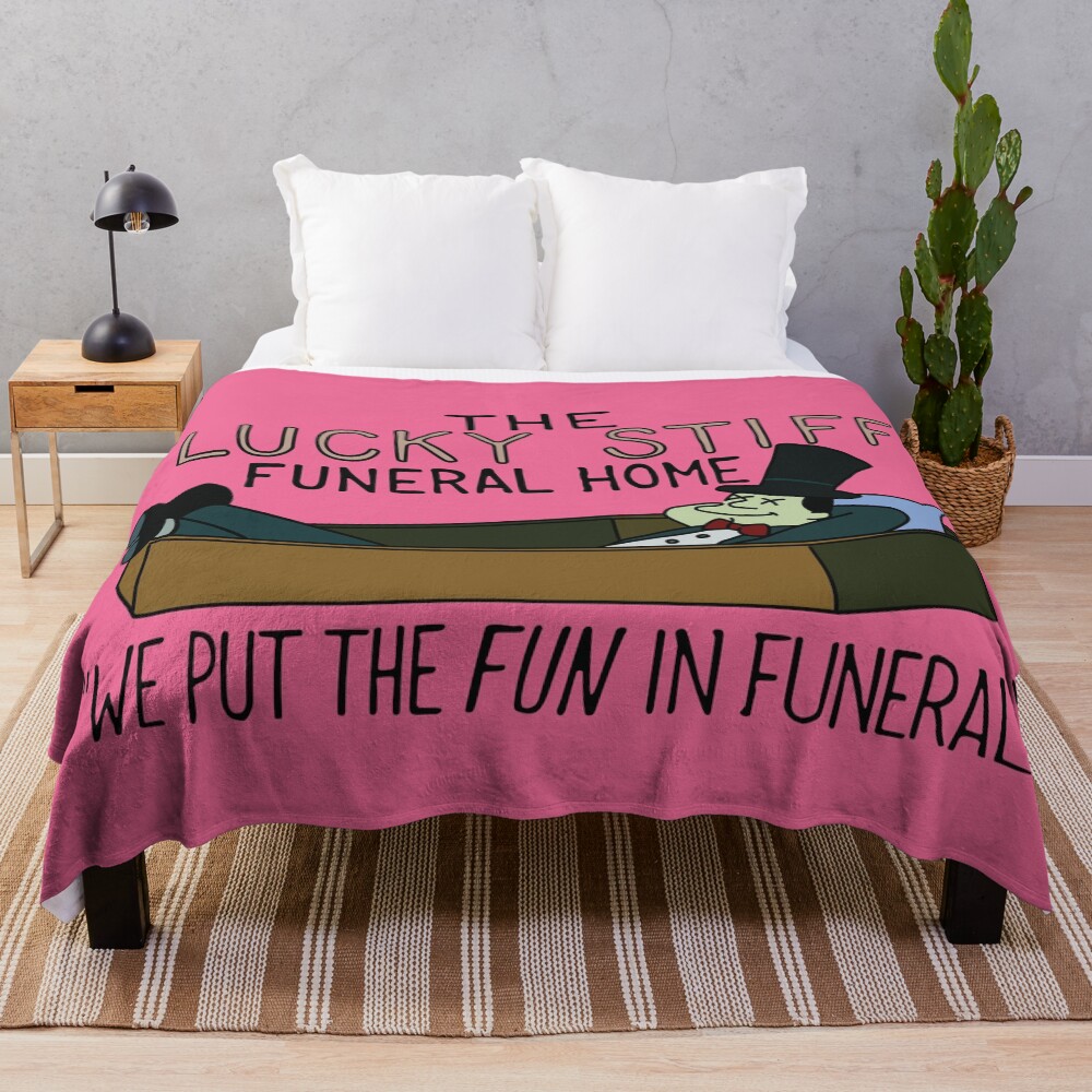 The Lucky Stiff Funeral Home Throw Blanket